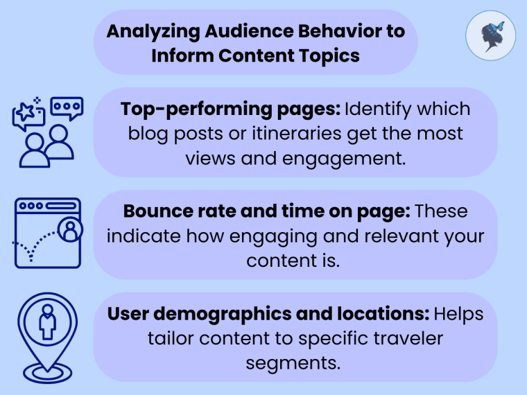 - Track key metrics: pageviews, session duration, top-performing content, and booking behavior
